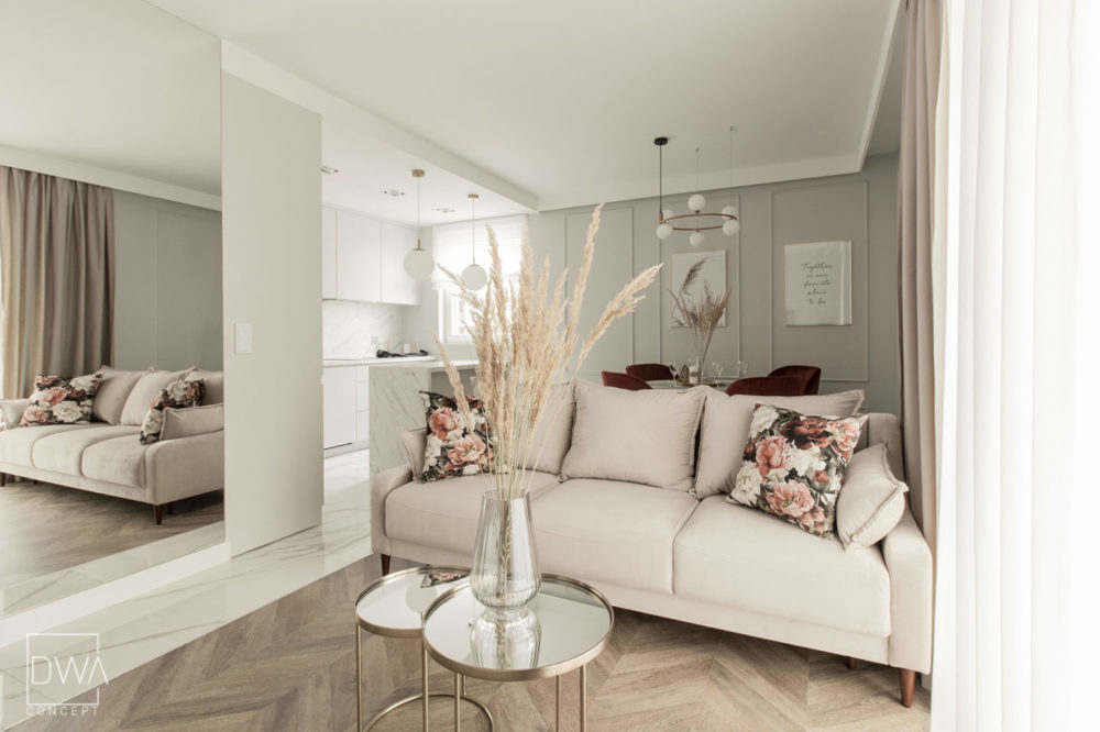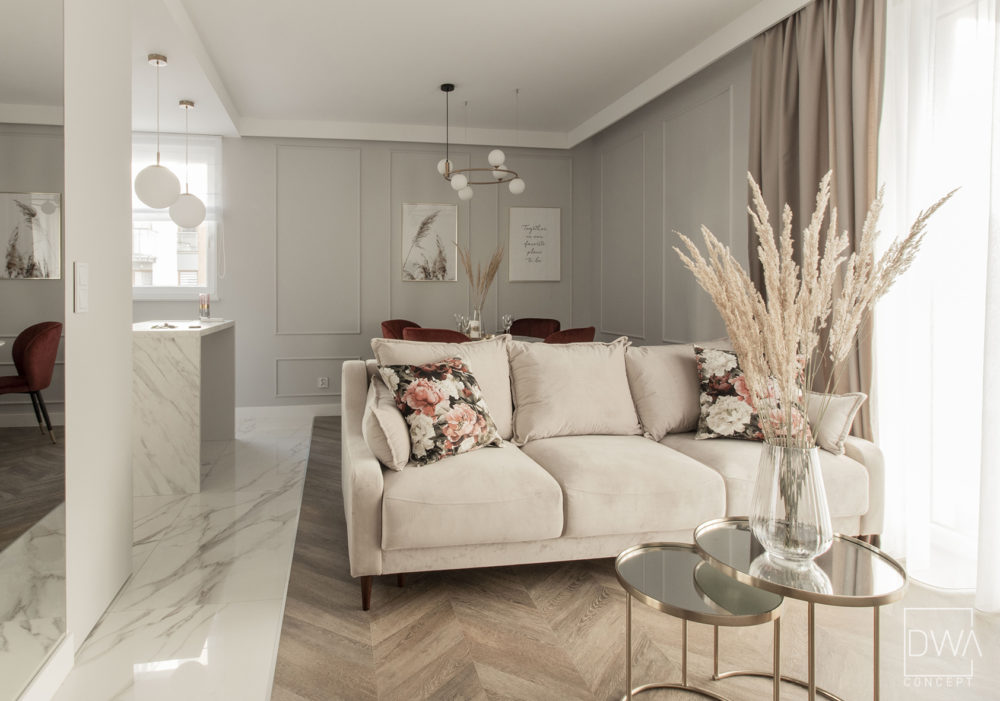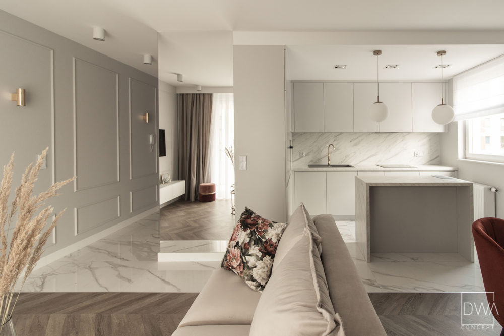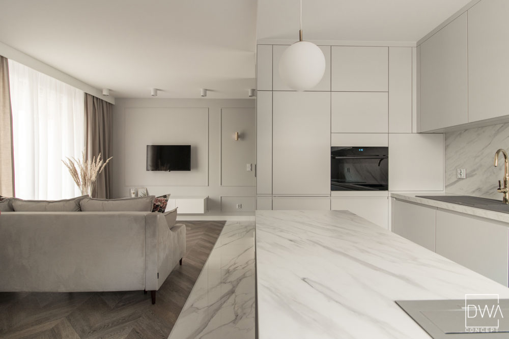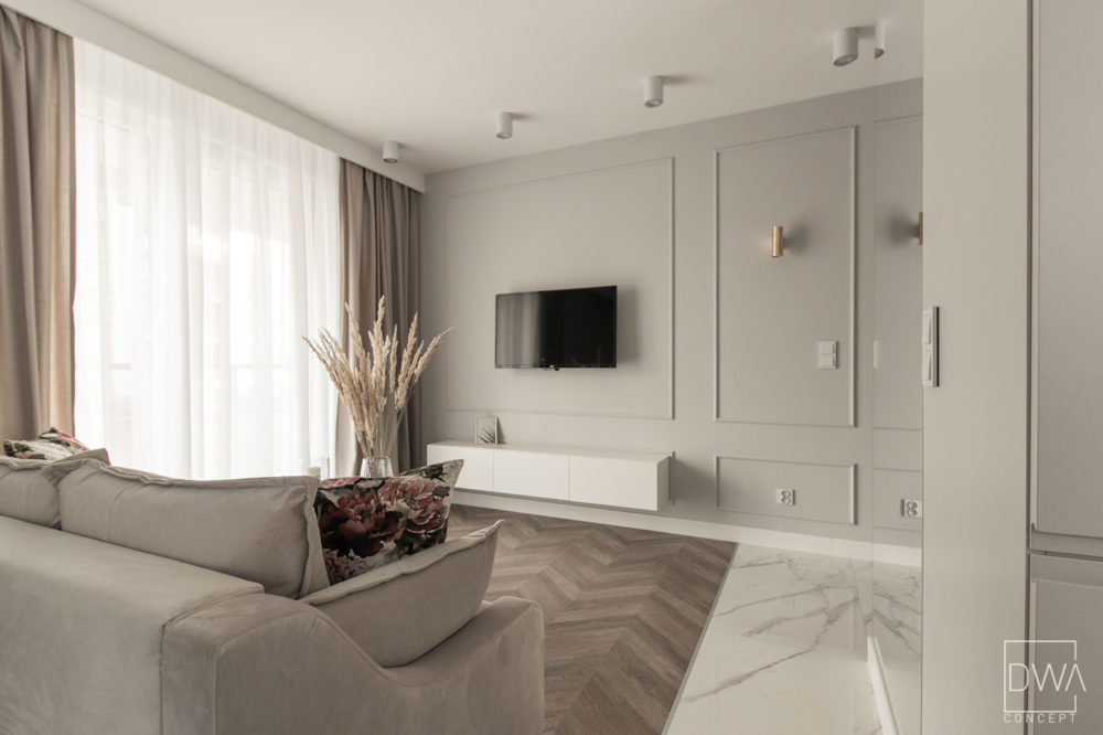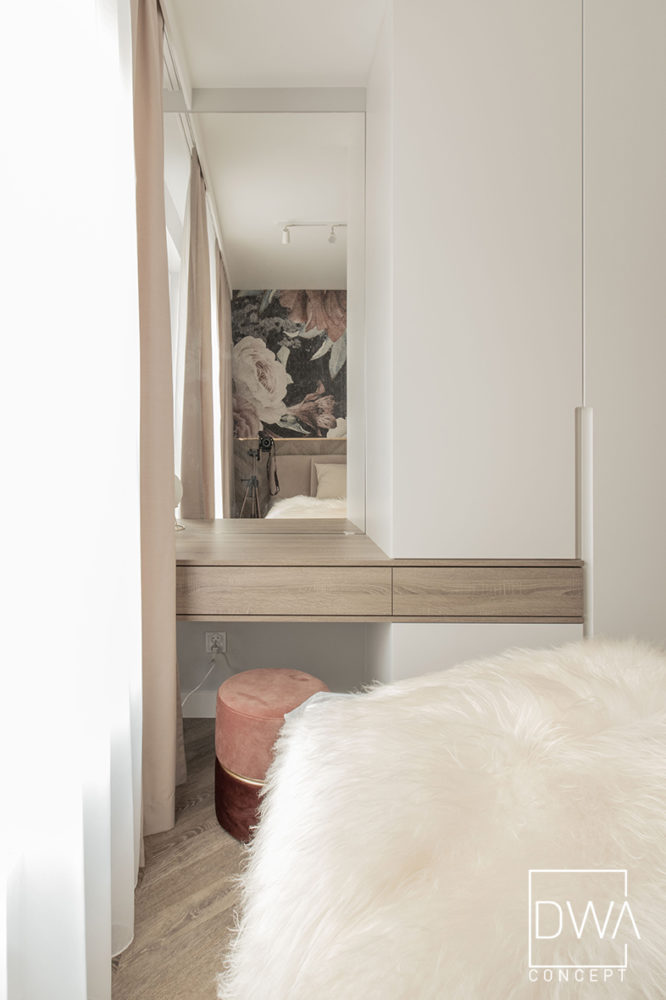 Realizacja projektu mieszkania dwupokojowego 46m2 w Krakowie.