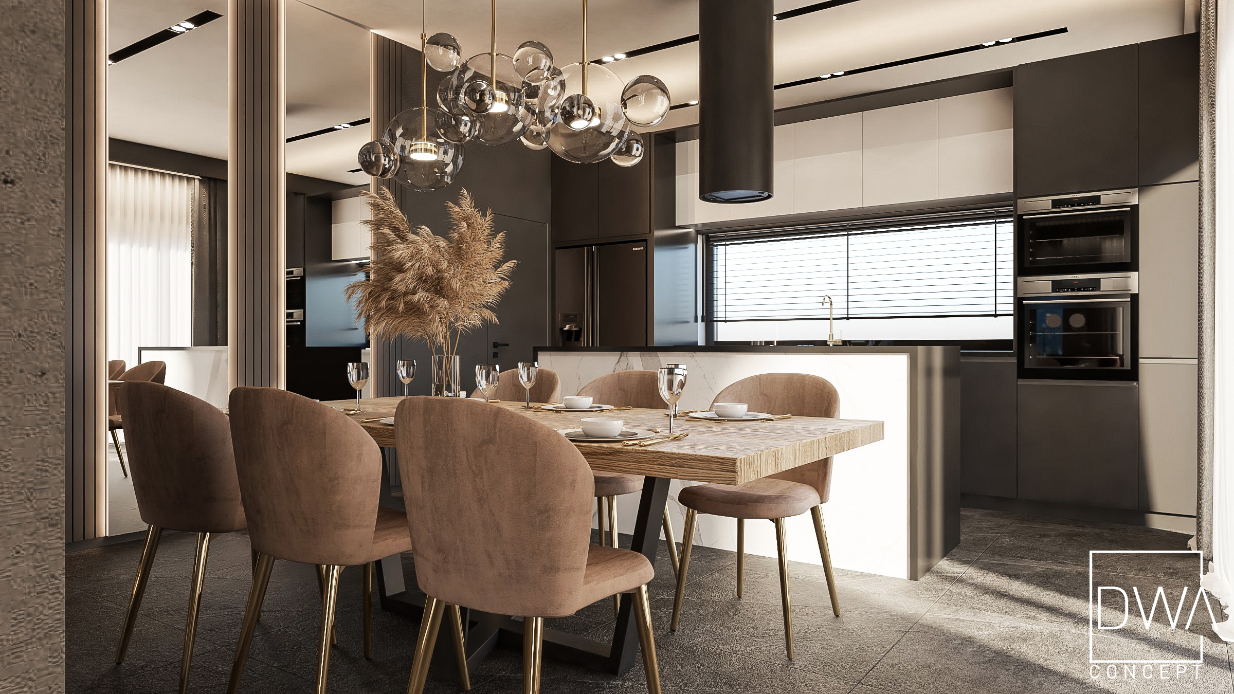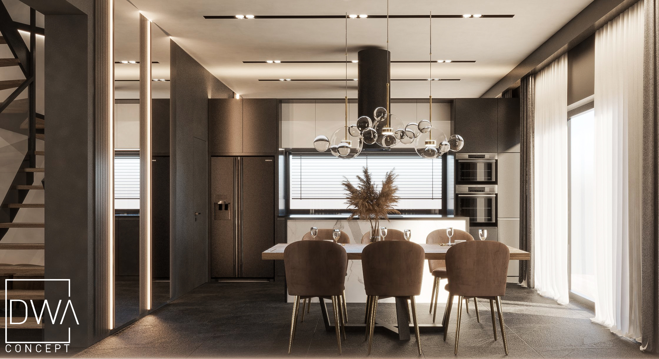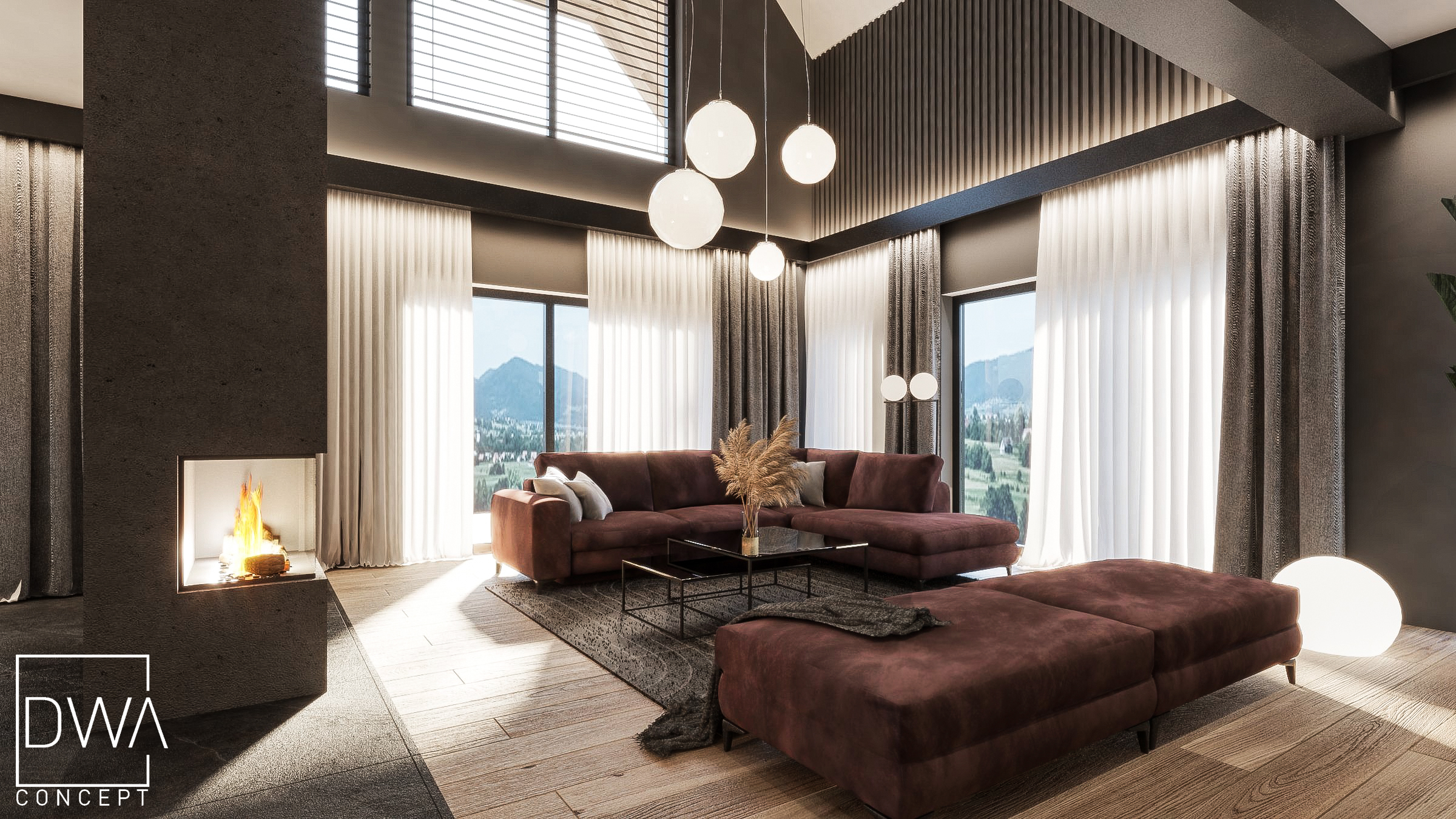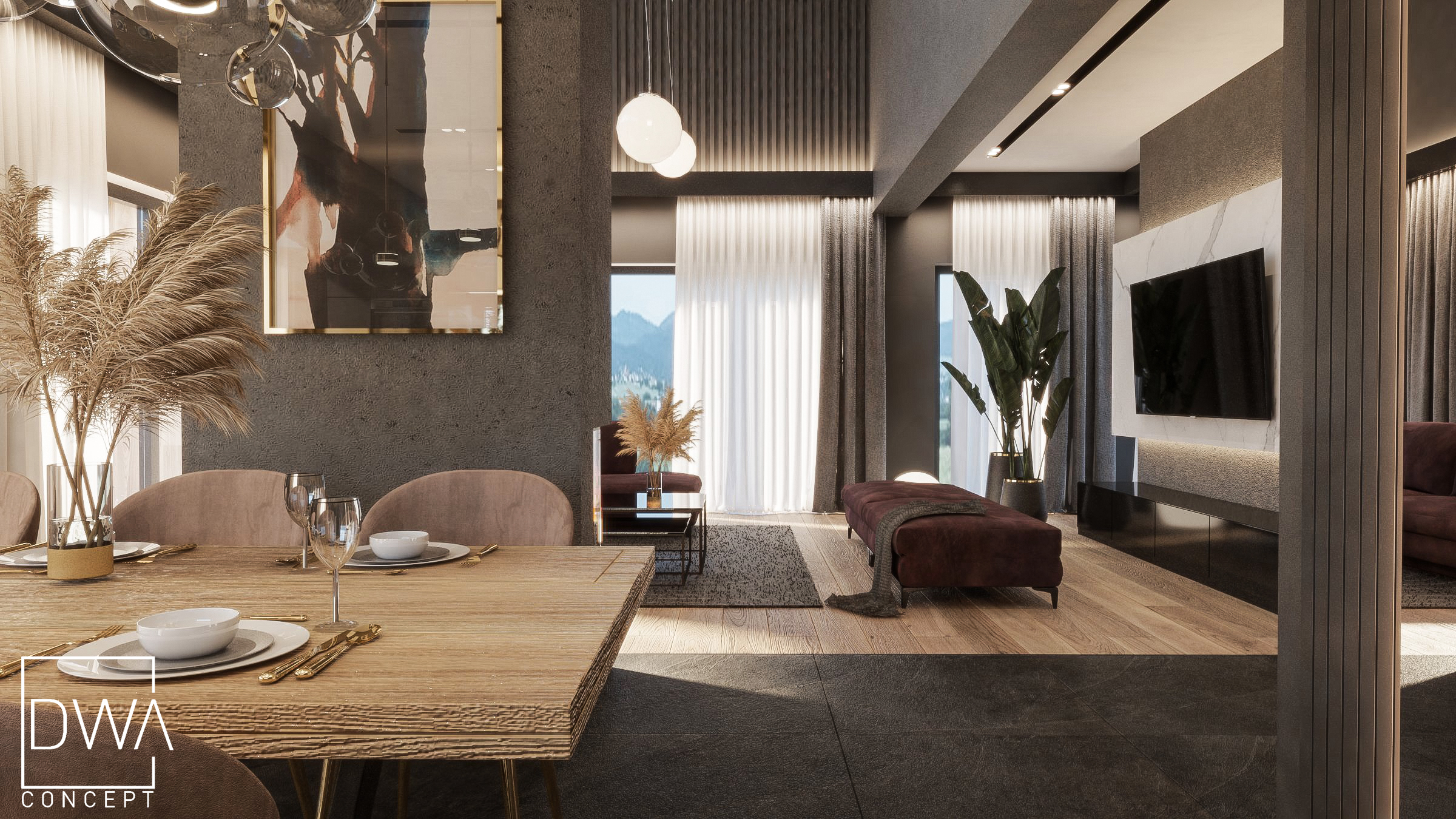 Projekt wnętrz strefy dziennej – Dom w Rabce-Zdroju.